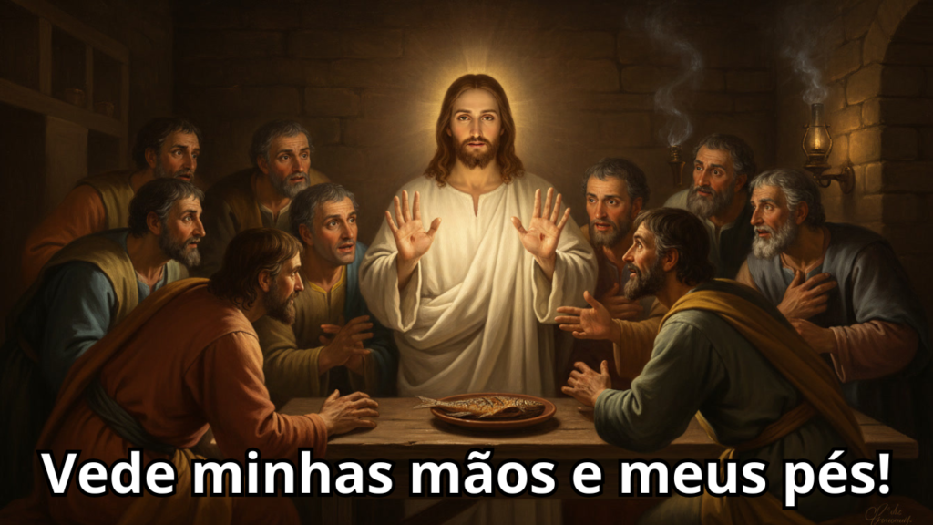 A Fisicalidade: Jesus insiste em ser tocado. Ele mostra as mãos e os pés — as marcas da Cruz agora são troféus da Ressurreição. Ao comer o peixe assado, Ele destrói a ideia de que a vida espiritual é algo “vaporoso”. A salvação atinge a nossa carne, a nossa história e as nossas necessidades básicas.